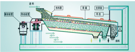 搖擺篩的工作原理為:篩機(jī)啟動后,篩體即篩箱在慣性力的作用下作前后往復(fù)運(yùn)動。篩箱帶動篩面作周期性搖動,從而使篩面上的物料隨篩箱一同作定向跳躍式運(yùn)動,其間小于篩面孔徑的物料通過篩孔落到下層,即為篩下物。大于篩面孔徑的物料經(jīng)連續(xù)翻滾跳躍運(yùn)動后從排料口排出,**終完成篩分工作。