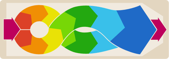 下圖可形象的說明方形搖擺篩是如何改變和控制物料在篩面上的運(yùn)動軌跡與滯留時間并進(jìn)一步提高篩分效率。